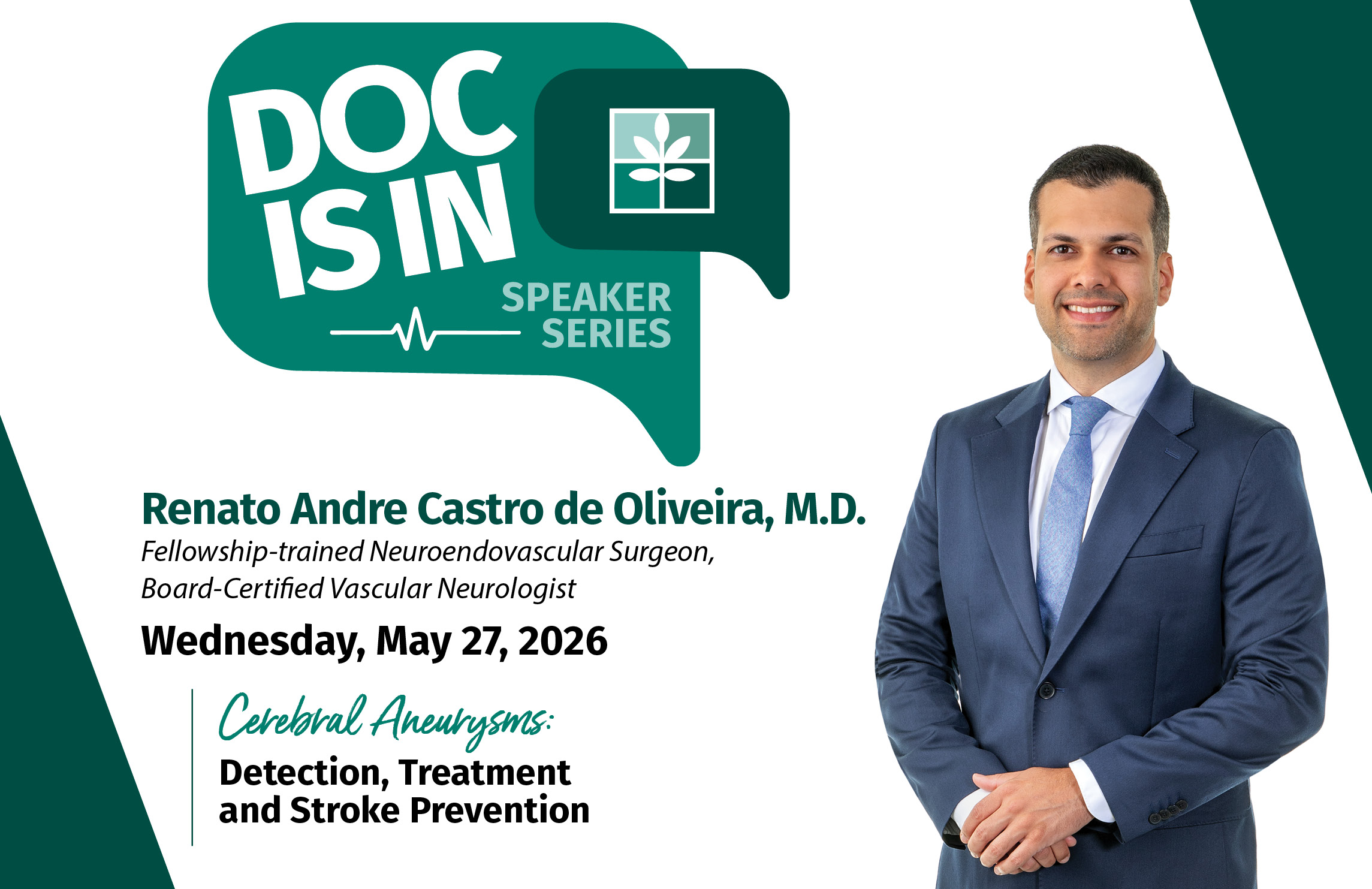 Our May topic will be Cerebral Aneurysms: Detection, Treatment, and Stroke Prevention