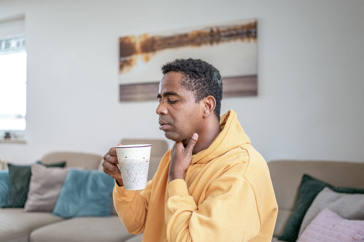 You notice a pain in the back of your mouth. When you swallow, it feels like your throat is full and like you have a mixture of sandpaper and straight pins back there. You might even notice some lumps or swelling on the outside of your throat.